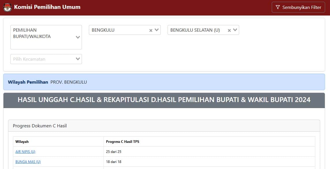 Hasil Perhitungan KPU Bengkulu Selatan Pada PSU Bengkulu Selatan 2025